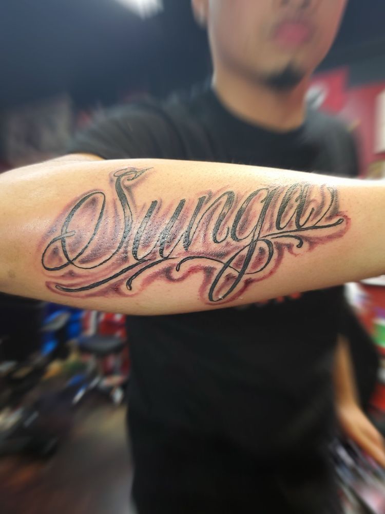 Amazing Artist Tabzone Forearm Rose Script Tattoo Tabzone
